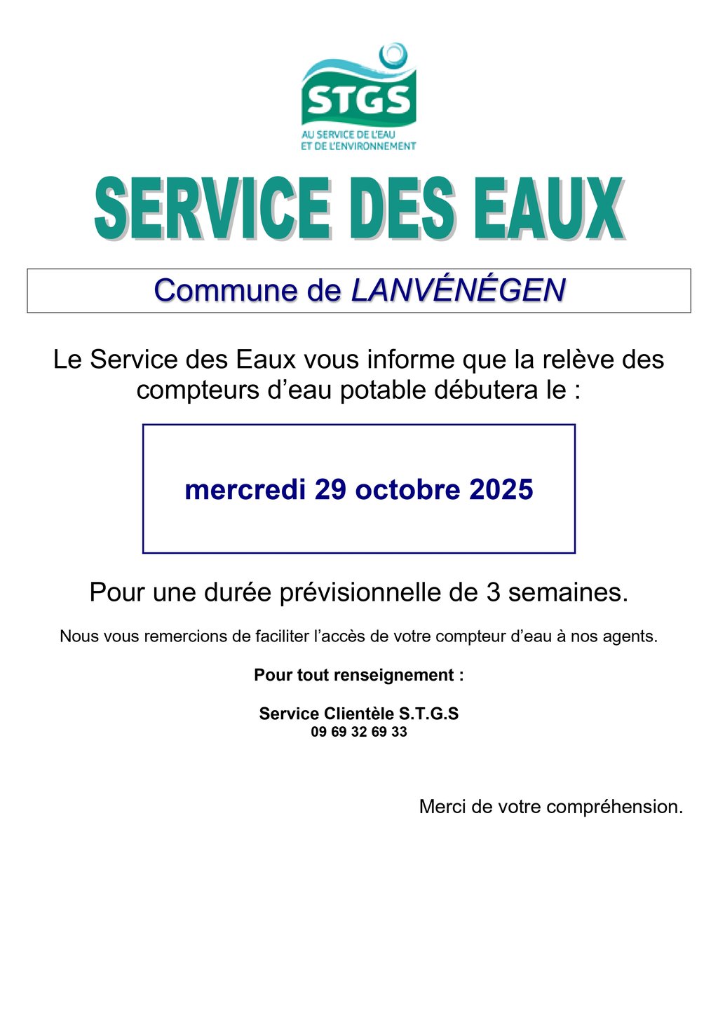 RELÈVE DES COMPTEURS D'EAU - STGS