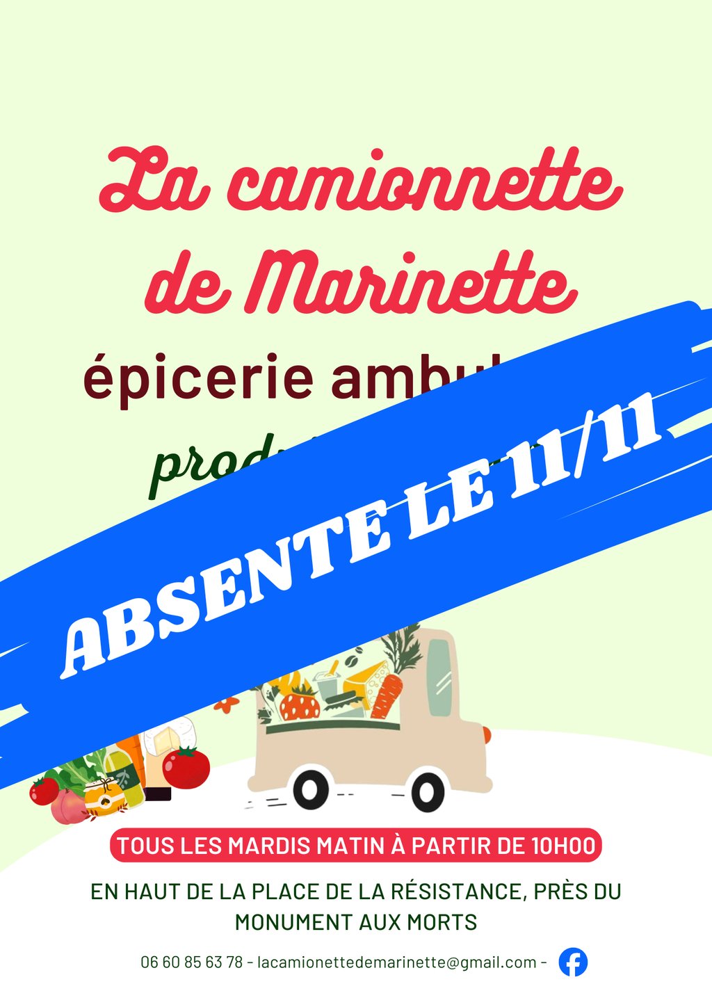 En ce jour férié du 11 novembre, la camionnette de Marinette ne passera pas sur la commune.