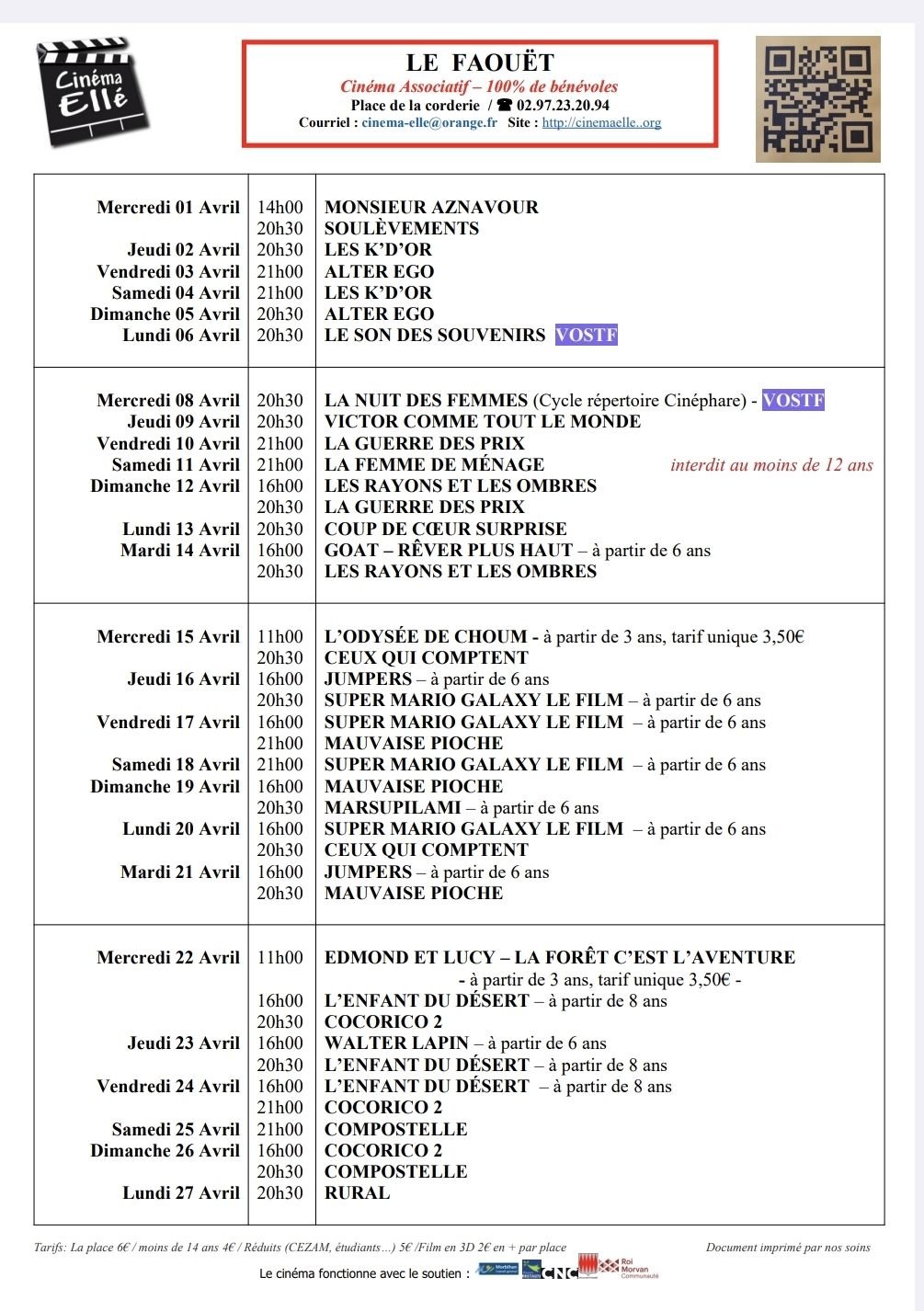 SÉANCES - CINÉMA ELLÉ LE FAOUËT