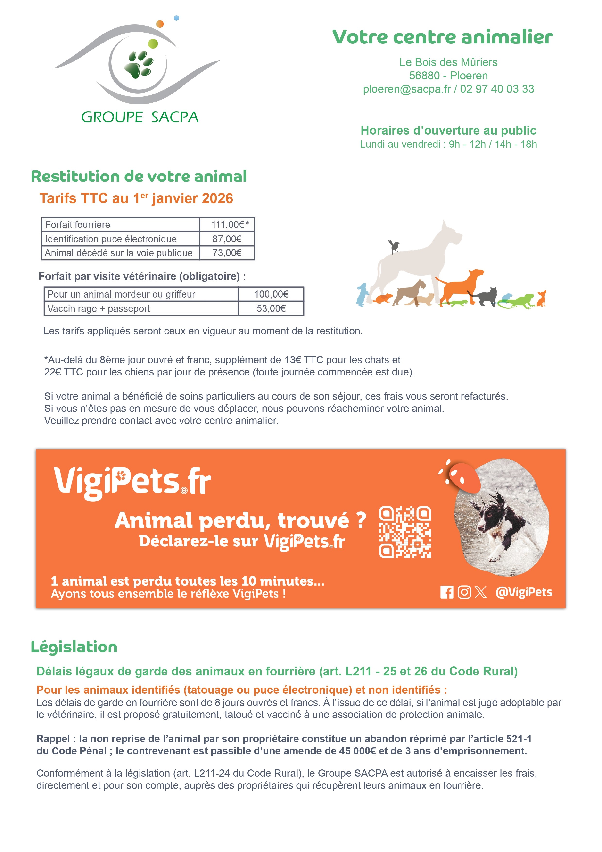 La commune de Lanvénégen dispose d'un contrat avec la SACPA de Ploeren pour le ramassage des animaux en divagation. Il convient de signaler ces animaux à la mairie, c'est cette dernière qui demande ensuite l'intervention de la SACPA.