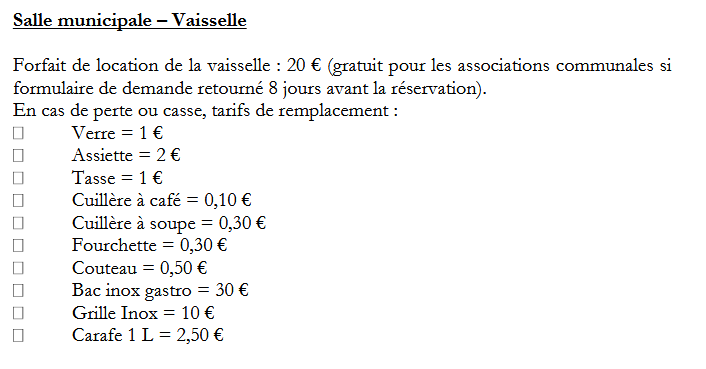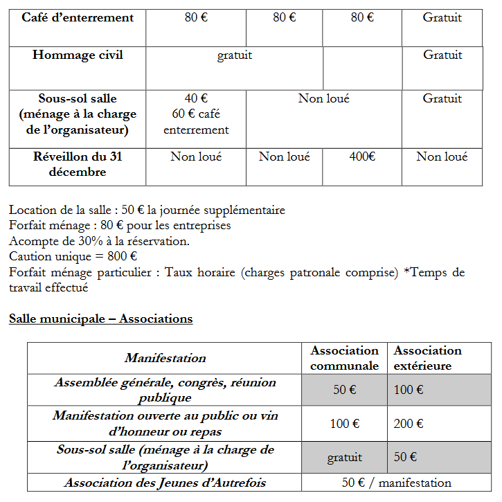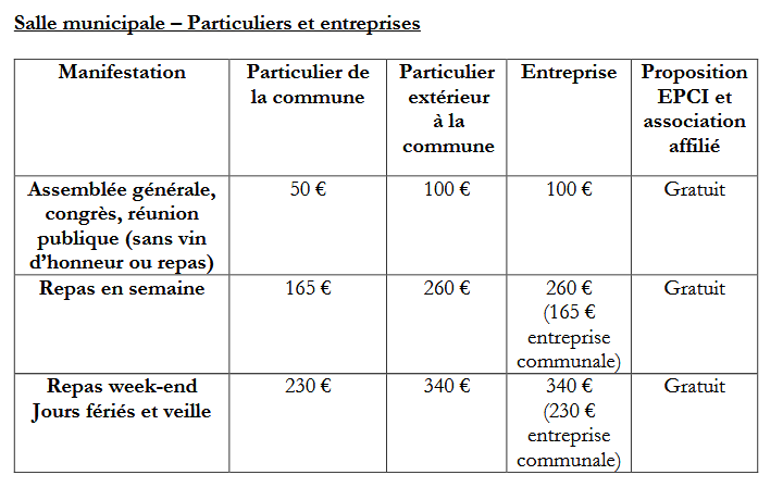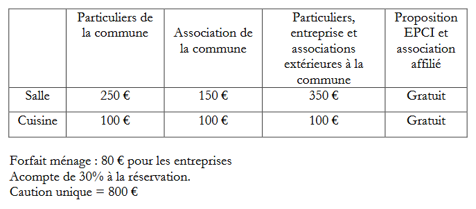 Location de la salle municipale - tarifs 2026